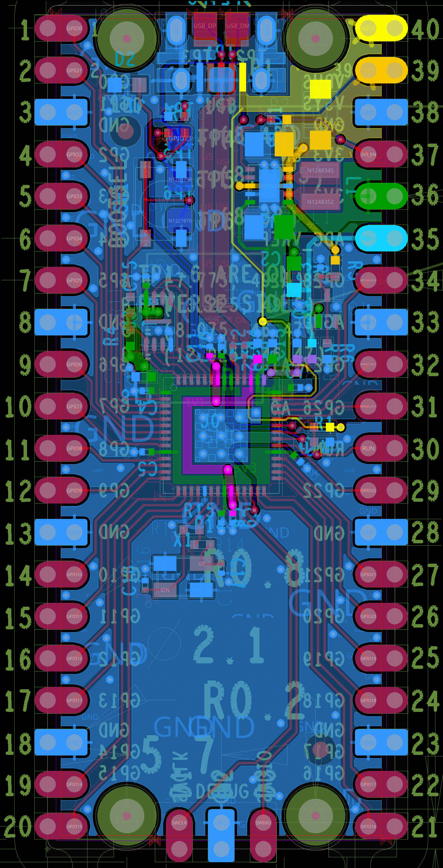 The bottom portion of the RPi Pico is only broken out pins from the RP2040.