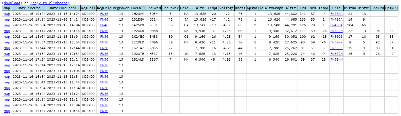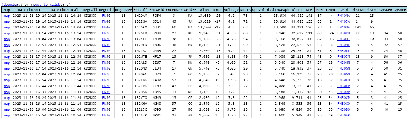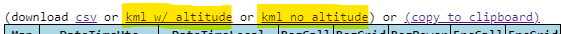 Just above the table of data, there are two new options, KML with altitude, and KML without.