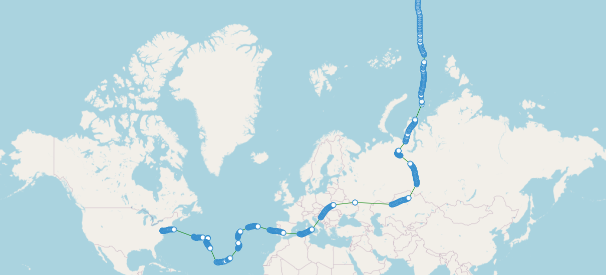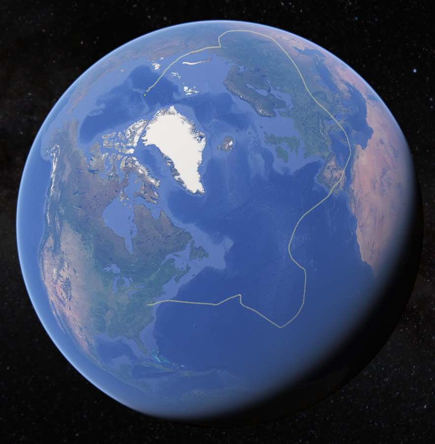 I thought to do this because my father's flight (link) has gone off the map toward the North Pole and has become difficult to conceptualize on a 2D map. This feature addresses that, and is also just kind of neat.